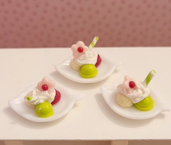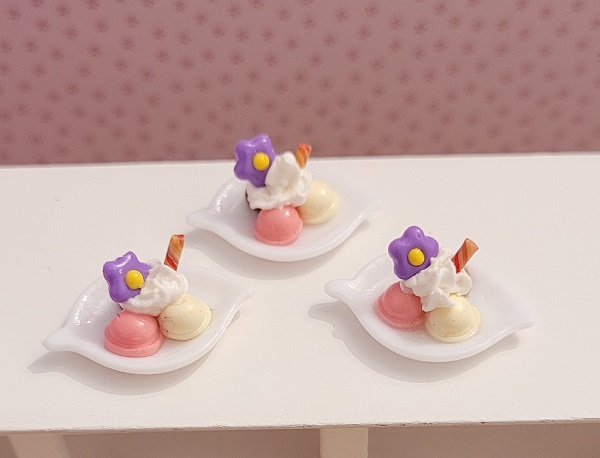 assiette 3 boules de glace miniatures accessoires maisons de poupées